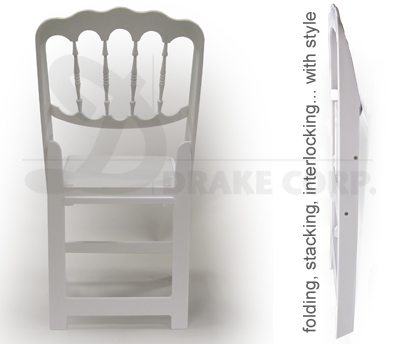 FOLDING CHAIRS resin HIGH BACK WHAT DOES "HIGH BACK CHAIRS" MEAN? Chateau, Louis & Fan by Drake, with their high decorative back towering the tables and their classical rich lines, will stand out and look fabulous whatever the setting. Whether used with additional decorations or simply bare, the Chateau or the Louis by Drake will bring high class event sophistication to the table with the ease of handling of a folding chair. These chairs will better dominate the table set up due to the 41.5" long design. Furthermore these chairs provide an amazing back support during sitting giving extreme comfort, unparalleled by regular folding chairs. Let our new "decorative high back folding chair designs" complement your table!!!